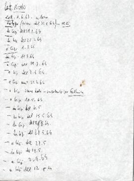 Sul piatto annotazione: «mancano lettere mie del '63 e risposte '64, forse in Archivio Nono a Ve»: Fogli sciolti ms. e dattiloscritti e fotocopie, raccolti per data in camicie con indice e lettere anche dell'Archivio Nono di Venezia (21 agosto 1961 – 7 gennaio 1965). Contiene una lettera di Italo Calvino.